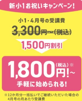 今から新1年生コースに入会すると、4月号の受講費が1,500円割引されます。