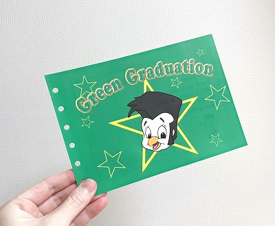 グリーンのマイブックカードにも、グリーンCAPを被った娘の写真を貼りました。